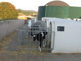Kälber im Iglu, danach im Kälberdorf an Computerfütterung,
